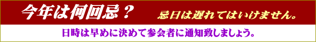 ※法要は命日の当り日に行うのが一番よいのですが、最近は参列者の都合に合わせて、土曜・日曜・祝祭日に行うことが多いようです。